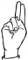 На ћирилици написано БОРИС КУПРЕШАК састоји се из 13 слова [?]. Исписано ћириличном једноручном азбуком за глувонеме: